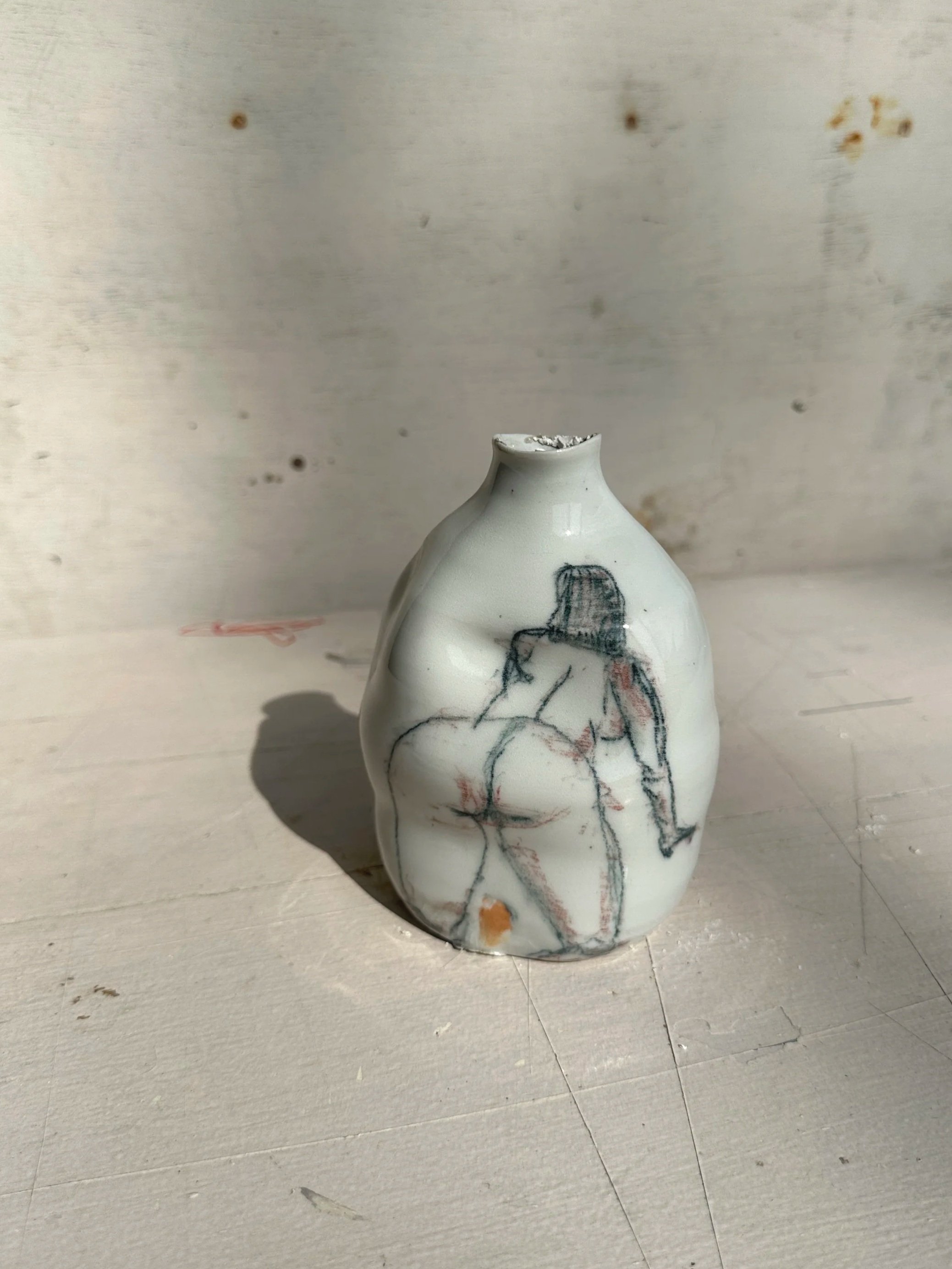 Jose Solon Perfecto’s latest collection, “Etudes in Nudes,” features underglaze on white stoneware. These vessels are on display and available for purchase through the group show, “Haplos,” at Aphro, Makati City.